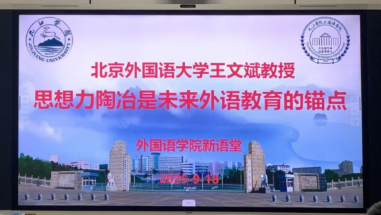 9月18日下午,北京外国语大学文科资深教授王文斌应邀来到beat365外国语学院新语堂,为师生带来题为“思想力陶冶是未来外语教育的锚点”的精彩讲座。讲座吸引了众多外语专业师生聆听学习。