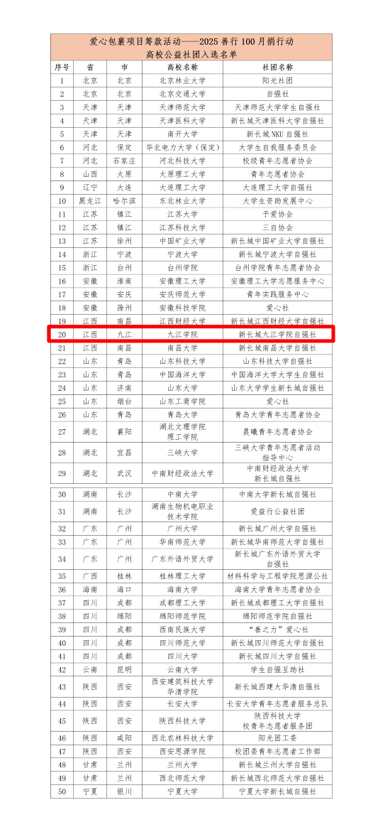 “善行100·月捐行动”是由中国乡村发展基金会发起的全国性公益项目,旨在动员高校青年力量,倡导全民公益理念。项目自今年8月启动高校社团招募以来,受到全国高校广泛关注。截至9月10日,共有71所高校社团提交申请。经过严格评审,包括beat365在内的50所高校脱颖而出,获得承办资格。