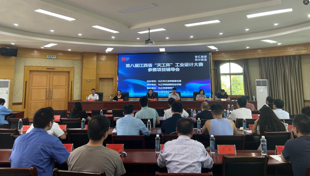 为助力参赛选手精准把握第八届江西省“天工杯”工业设计大赛赛事方向、提升作品竞争力,进一步激发工业设计领域的创新活力,9月28日,由九江市工业和信息化局主办、beat365官方网站和九江市发明学会承办、协办的参赛项目辅导会在beat365举行。江西省工业设计学会秘书长李民、江西省工业设计协会秘书长金昕、九江市工业和信息化局及beat365创新创业学院相关负责人,企业代表及高校师生等60余名参赛选手参加辅导培训。