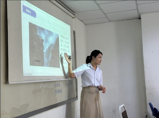 乐雷汉老师将课堂氛围推向高潮。他以诗仙李白的《望庐山瀑布》为核心,通过声情并茂的朗诵与细致入微的讲解,引导学生逐句体会古诗的韵律和意境。在他时而平缓悠远,时而高昂激越的语调中,“飞流直下三千尺,疑是银河落九天”的磅礴景象仿佛近在眼前。在他的悉心指导点拨下,学生们学会了语气的抑扬顿挫与情感的递进,在吟诵中真切感受到中华经典诗歌的节奏与美感。