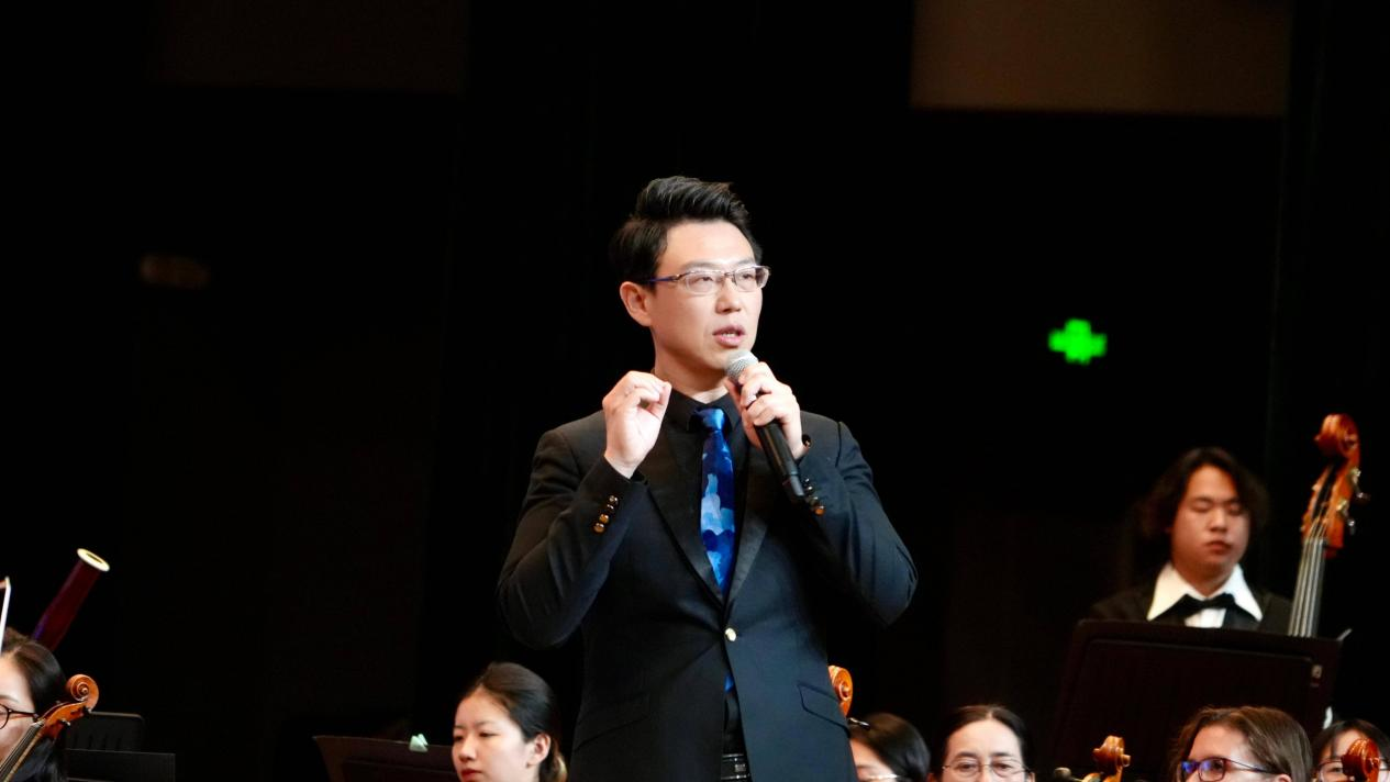 此次音乐会由荷风爱乐乐团团长高宾执棒,他以生动幽默的方式为同学们介绍了交响乐团的基本知识,通过现场讲解与展示的方式让观众们更直观的了解交响乐艺术,不仅拓展了学生的音乐视野,更在他们心中播撒下美的种子。
