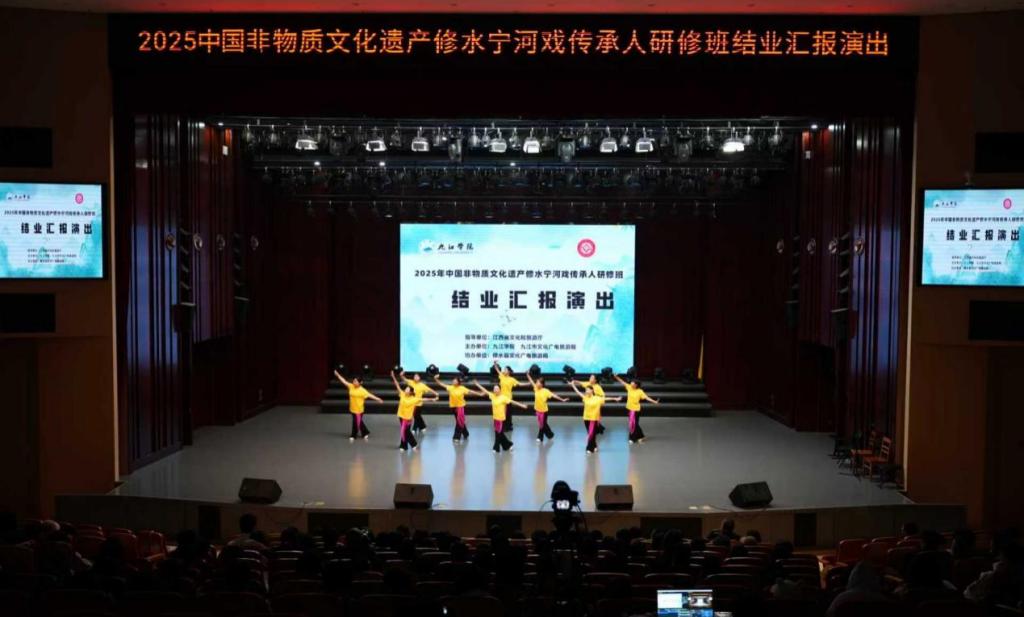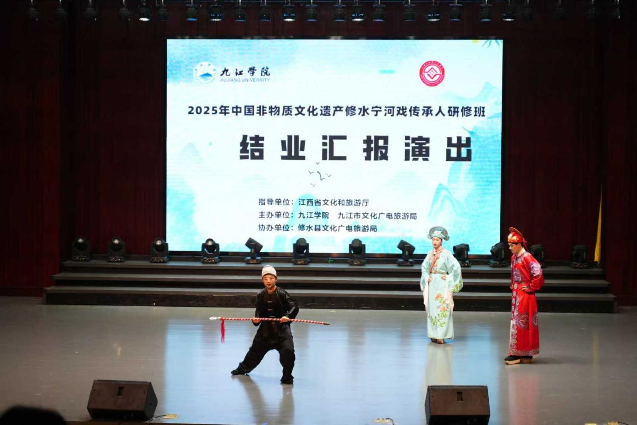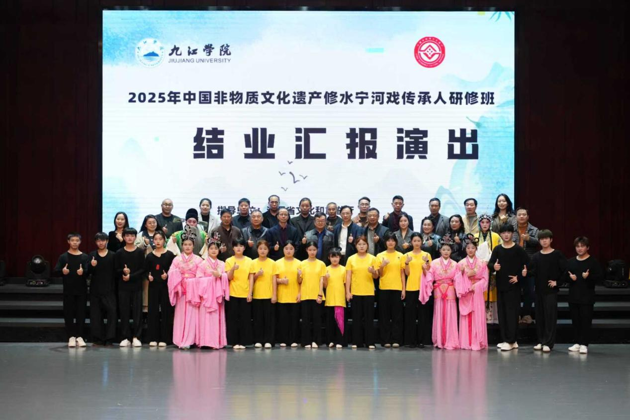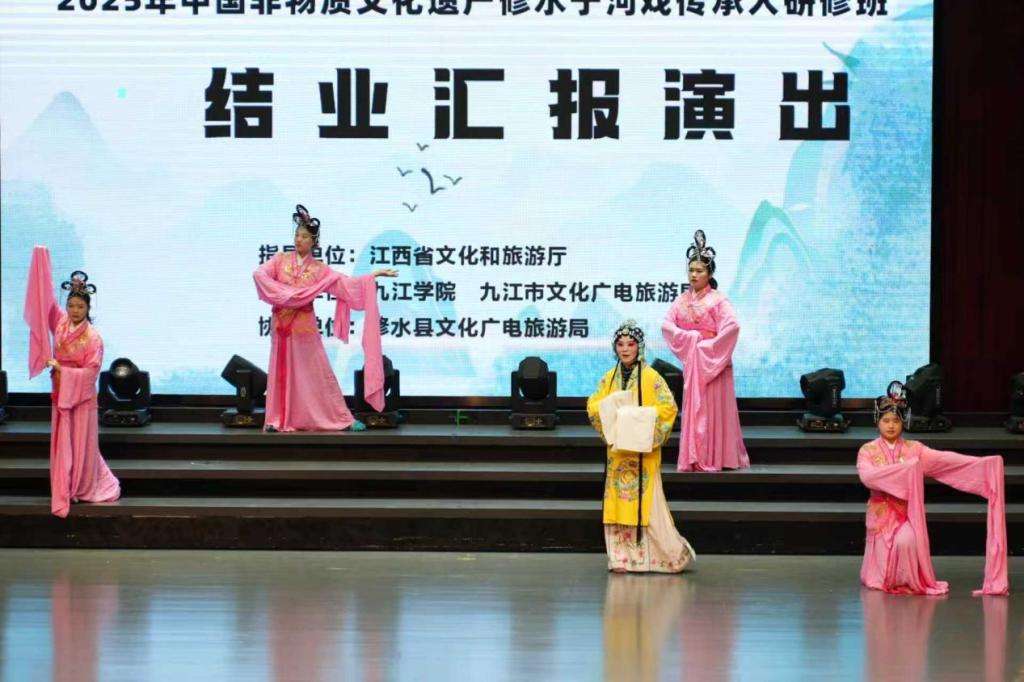 11月9日,中国非物质文化遗产修水宁河戏传承人研修班结业汇报演出在艺术学院音乐厅举行。汇报演出以网络直播和现场观看两种形式结合进行。艺术学院党政班子、修水县文旅局领导及学院师生一起观看了演出。