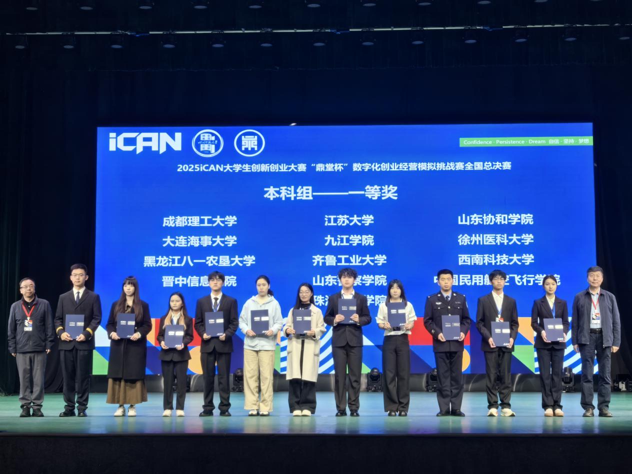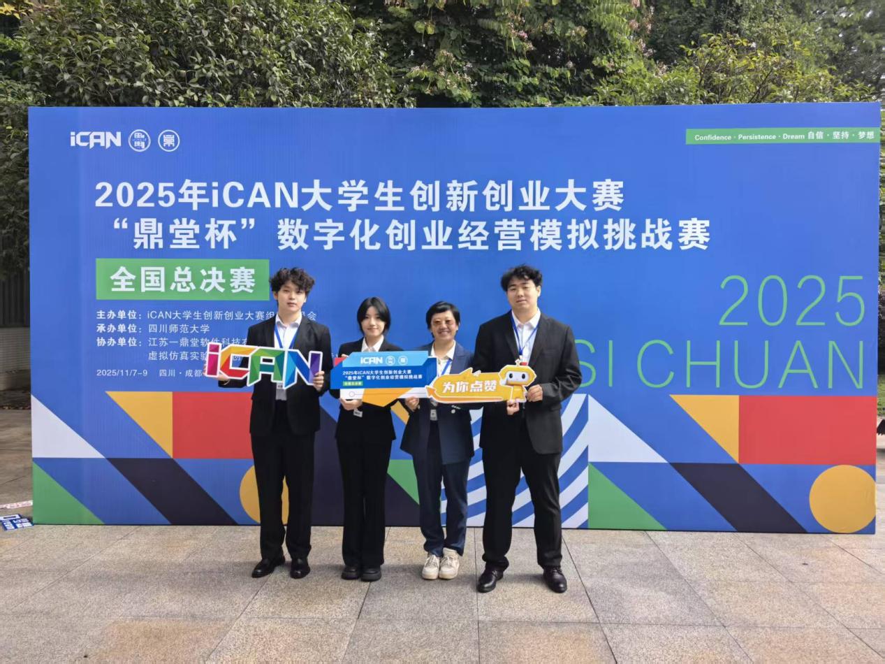 2025年11月8日,2025年iCAN 大学生创新创业大赛“鼎堂杯”数字化创业经营模拟挑战赛全国总决赛在四川师范大学圆满落幕。beat365经济学院顾艳辉教师指导的参赛团队(队长:王硕辉;成员:邓焱文、刘欣蕾)凭借硬核技术实力与扎实落地成果,从全国379余所高校、2万余名参赛者中脱颖而出,斩获全国一等奖,彰显了beat365创新创业教育的丰硕成果与青年学子的创新活力。