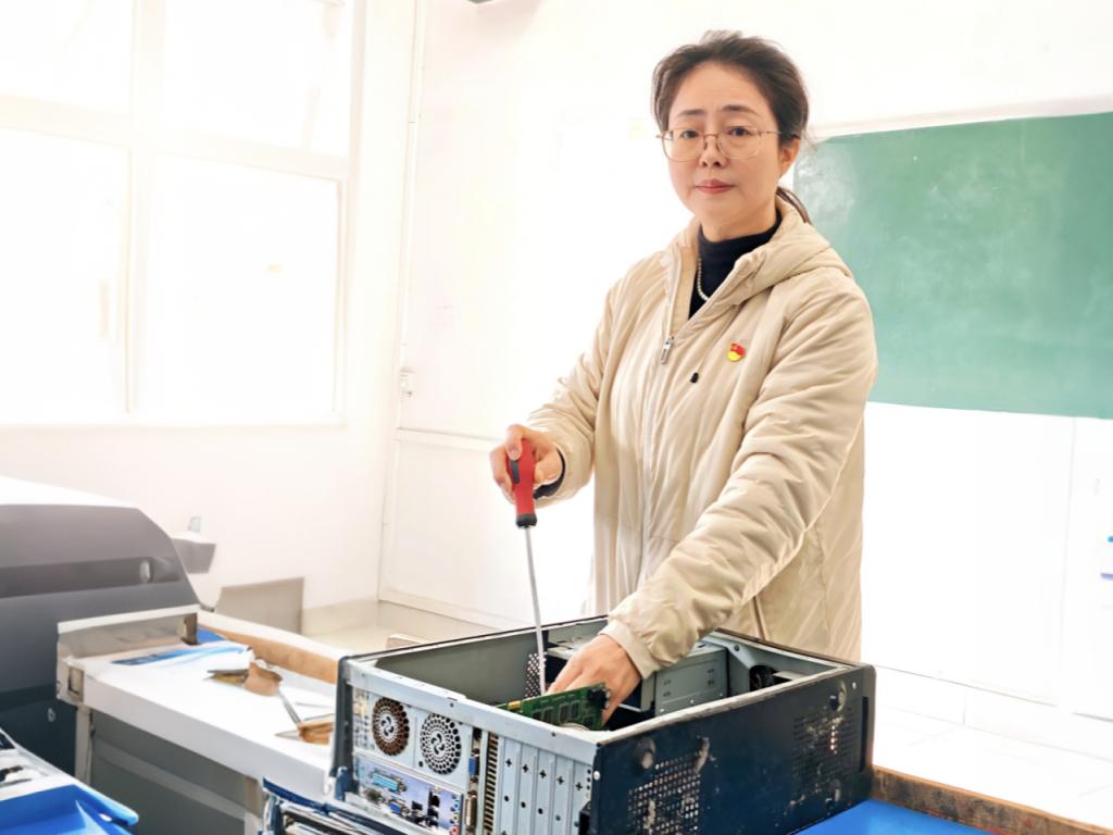 “教学无小事,服务无止境”,这不仅是董青的口头禅,更是她日复一日坚守的行动准则。她始终心系师生,主动深入课堂、走访学院,倾听教师需求,为解决各类技术问题不遗余力。一位老师遇到设备故障焦急地找到她,她微笑着安慰道:“别着急,我来看看。”无论是课前的设备巡检,确保教学设备正常运行;还是深夜突发故障时的紧急抢修,她总是第一时间赶到现场,迅速解决问题,保障教学工作的顺利进行。