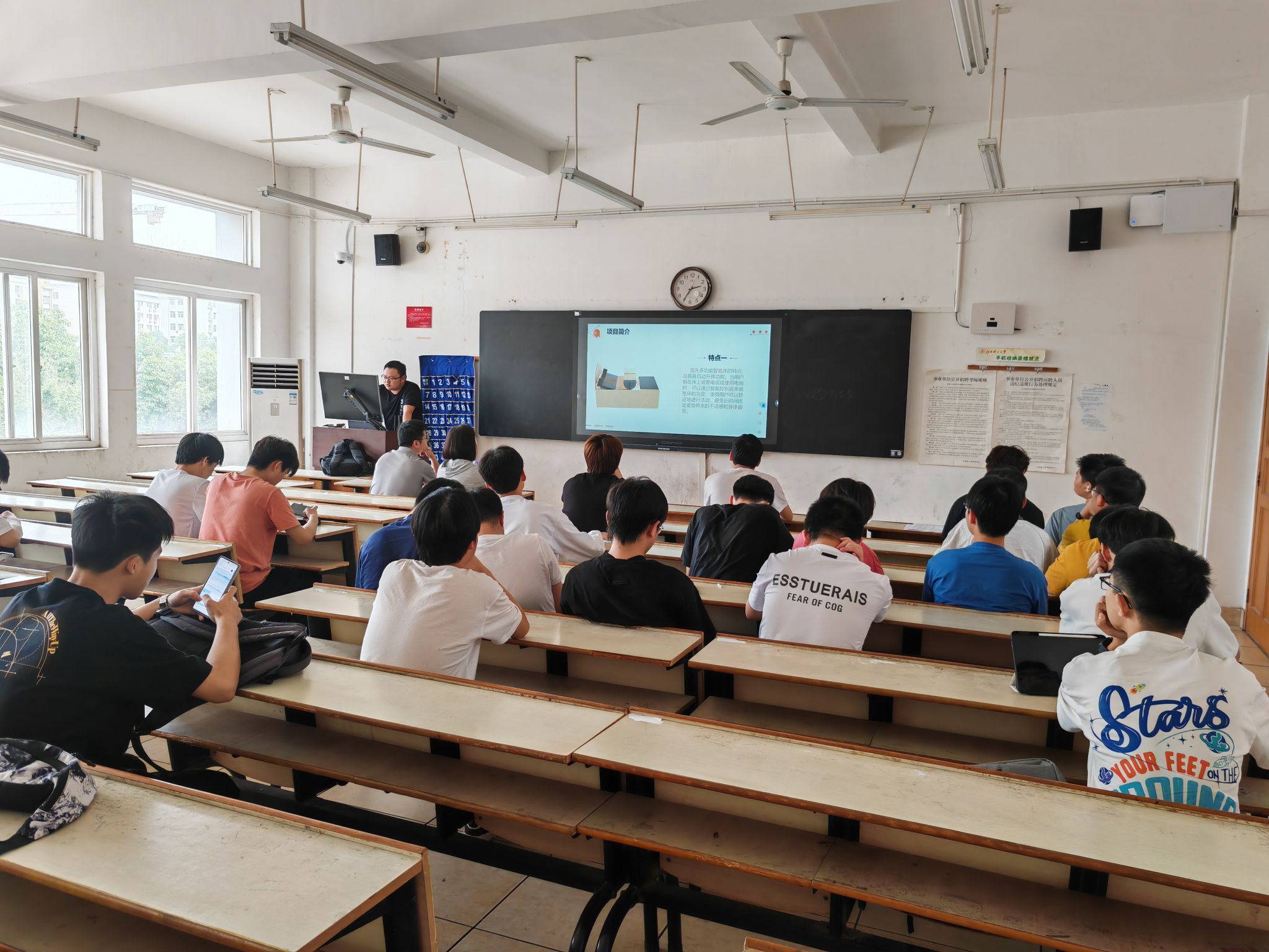 赛中,各参赛小组依次上台对作品的各个模块从应用场景、实用性、创新点等方面进行介绍,评委老师在仔细研判与探讨后对作品做出了公正客观的评价,随后对所有上台展示的作品评委老师均从各个角度提出了更为专业的建议。最后,评委老师对此次比赛进行总结,希望同学们能在未来的比赛中能够不断创新、奋勇争先,以更高的标准更好的姿态去迎接接下来的各类比赛并能够获得更高的成就。