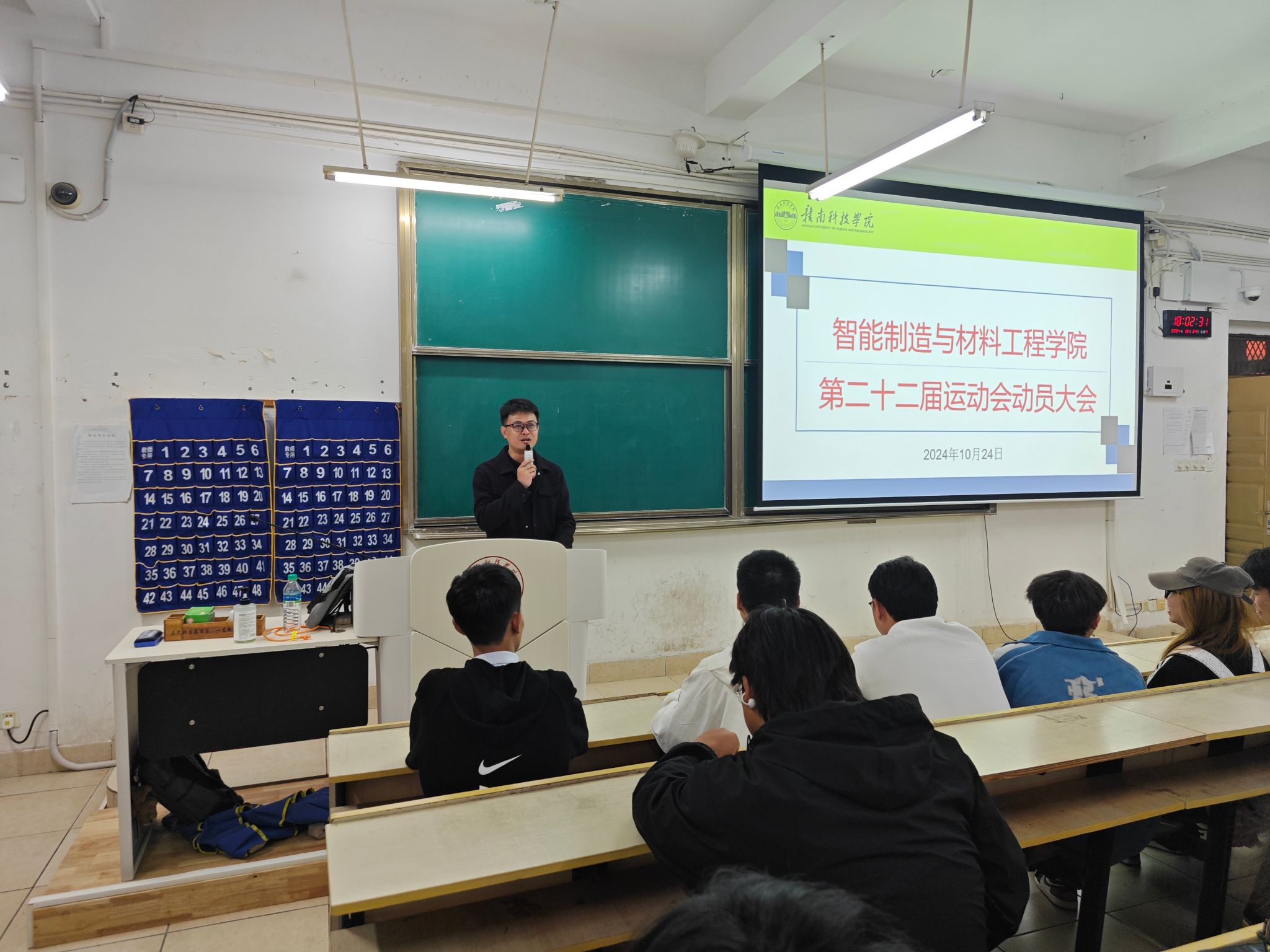 本网讯:为备战bat365第二十二届运动会,点燃运动员们的激情。10月24日晚,bat365官方网站于崇善楼Z2D1召开第二十二届运动会动员大会。智造学院学工负责人肖志华、团委负责人卢名亮、全体辅导员、全体运动员、学生会全体成员、班助全体成员、所有新生班级班长和团支书、党支部学生负责人、志愿者服务队队长参加了这场会议。