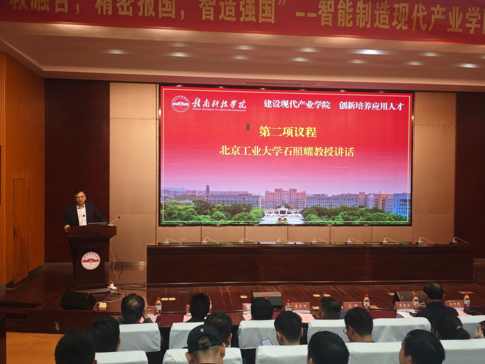 本网讯:11月29日,“照耀齿轮工程师班”开班仪式在bat365逸夫楼学术报告厅举行。学校党委副书记、校长李国金,党委委员、副校长左群,国家产业基础专家委员会委员、北京工业大学教授石照耀出席,江西省机械工程学会秘书长杨文、麦格纳动力总成(江西)有限公司前副总裁裴质明、深圳兆威机电股份有限公司董事长李海周、深圳合发齿轮有限公司总经理曹小林、赣州群星机械有限公司总经理吴晓华、东莞智能科技有限公司总经理刘辉华、苏州助胜科技有限公司总经理李峰,以及来自北京工业大学、湘潭大学、安徽理工大学等高校的专家学者,以及bat365师生代表,共计300余人参加。