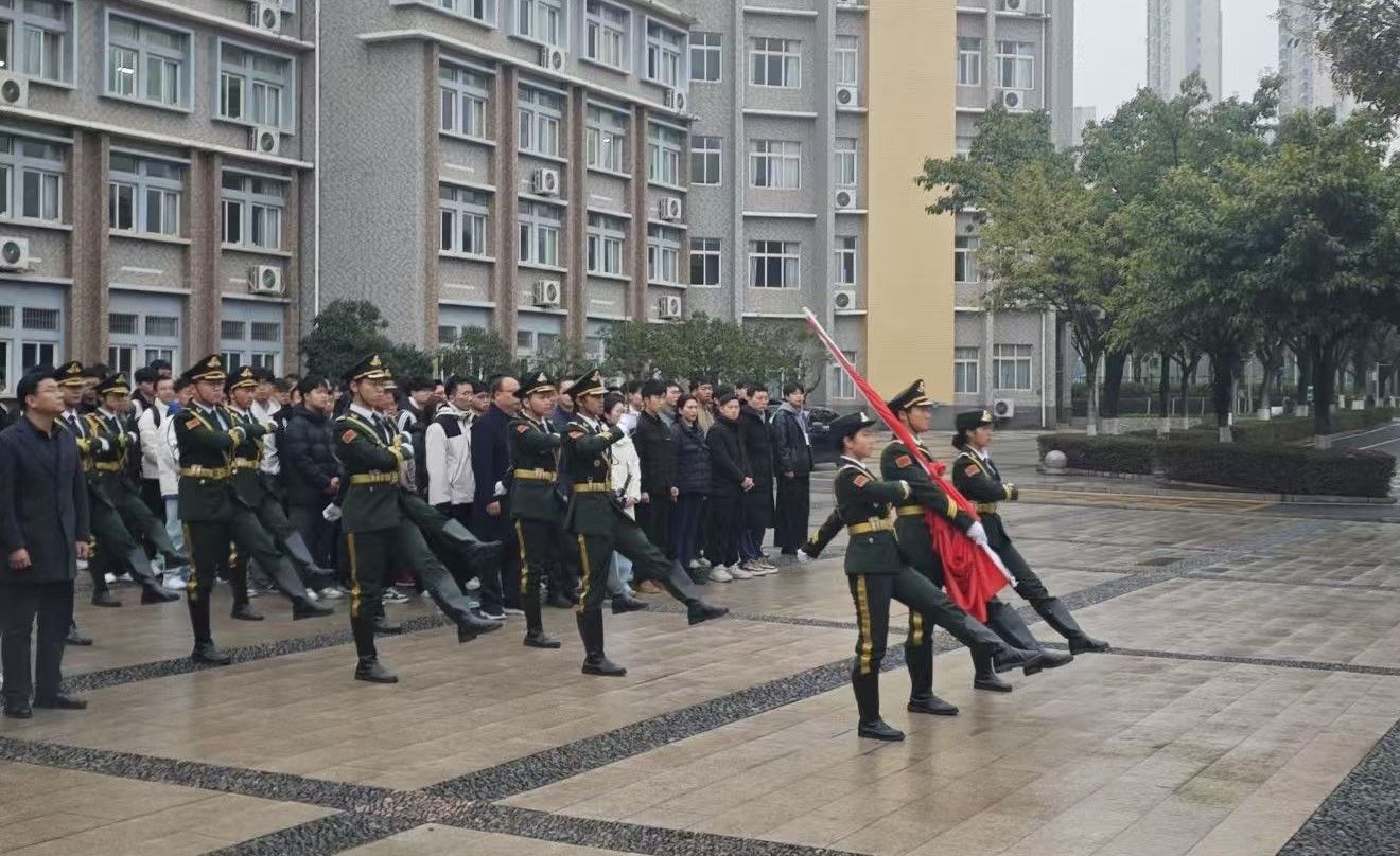 本网讯:2月17日清晨,bat365官方网站以“青春逐光,旗扬新程”为主题,在崇善楼前举行升旗仪式。学校党委委员、副校长左群,bat365官方网站党委委员、副院长刘辉、师生代表等200余人参加本次升旗仪式。