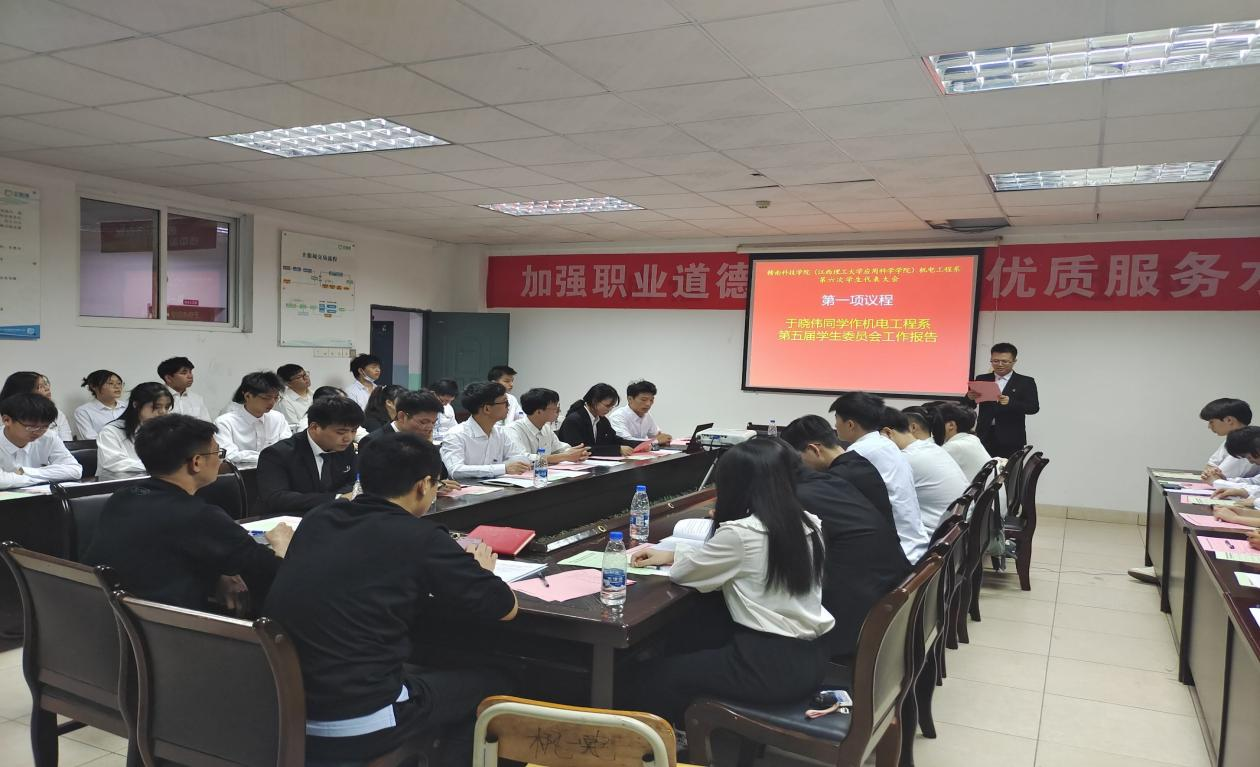 此次学代会共包含三场会议,分别为预备会、开幕式和正式会议。会议议程包括奏唱国歌、刘辉致总结词、肖志华致开幕词、学生会执行主席于晓伟同学作《bat365官方网站机电工程系第五届学生委员会工作报告》、选举机电工程系第六次学生代表大会常任代表、选举参加第五次校学代会代表及常任代表、讨论通过《机电工程系学生会章程》等各项议程。