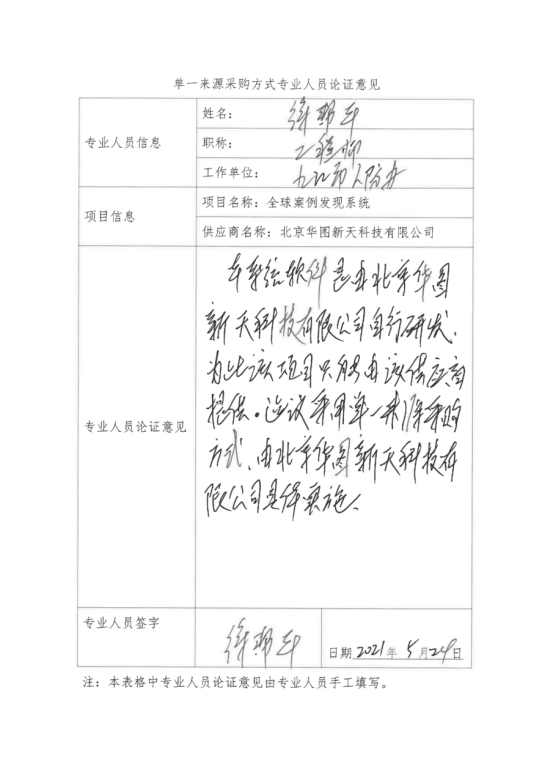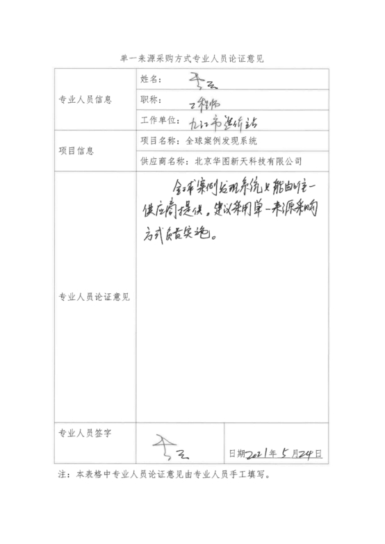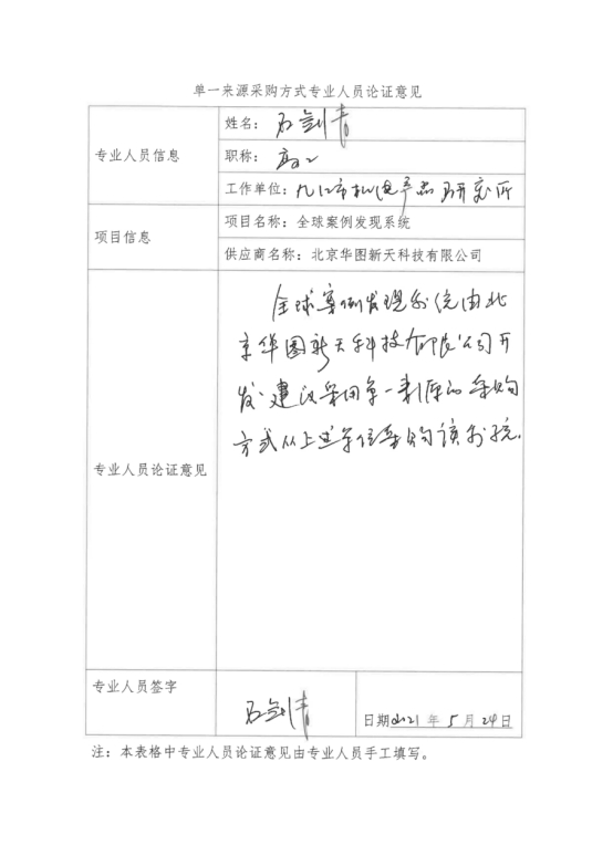 采用单一来源采购方式的原因及说明:本系统软件由北京华图新天科技有限公司自主研发,为此该项目只能由北京华图新天科技有限公司提供,建议采用单一来源采购方式,由北京华图新天科技有限公司负责实施。